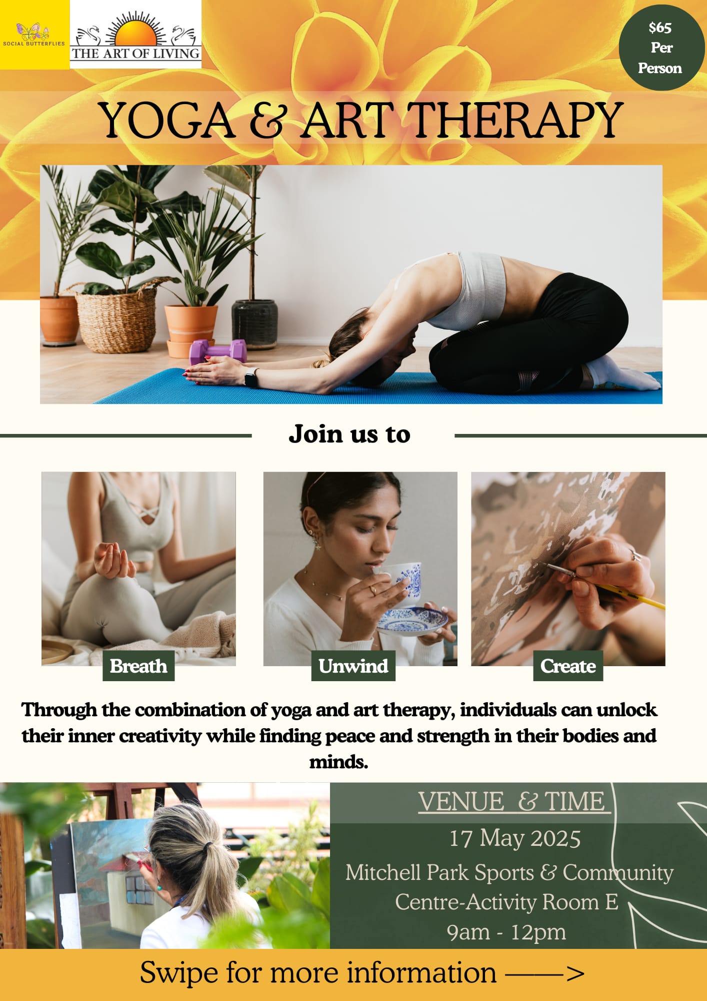 Social Butterflies invites you to a soul-soothing fusion of yoga and artβa session designed to relax your mind, awaken your creativity, and leave you feeling rejuvenated!